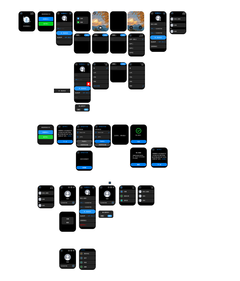 手表上使用的电话本,能打电话,能跳转至发短信界面,能通过蓝牙传输,也能设置头像等