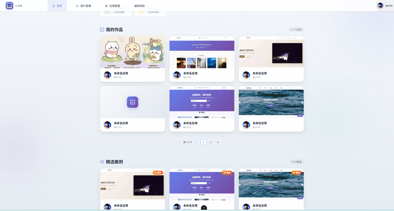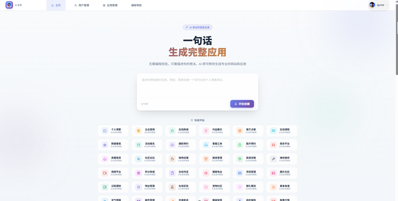 AI 代码生成平台(全栈项目),支持通过自然语言创建应用、流式对话生成代码、应用部署与管理。