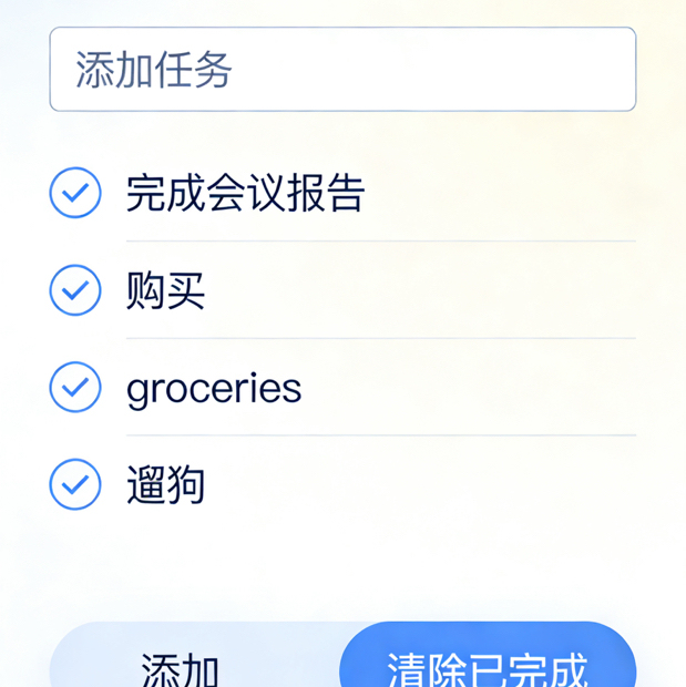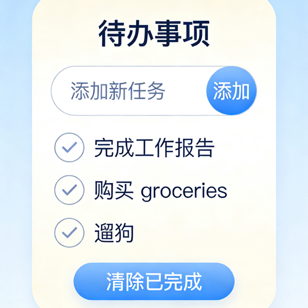 使用Vue2双向绑定与组件化开发,结合本地存储localStorage保存数据,实现任务增删改查与状态切换,逻辑简单、代码易读。