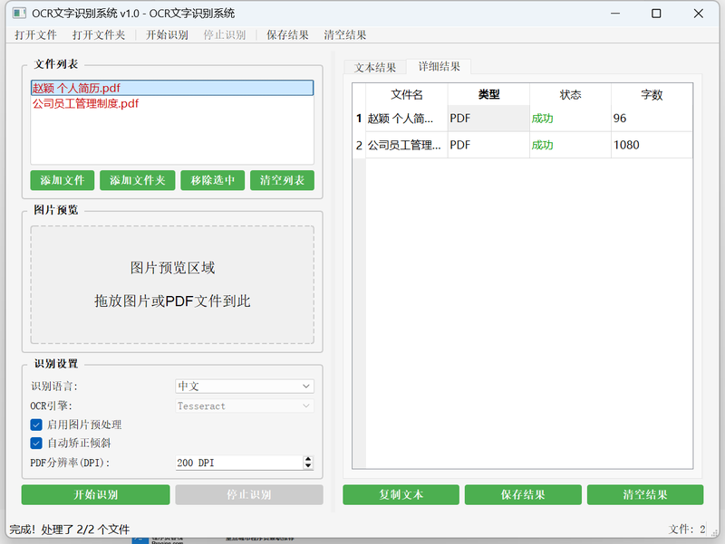 集成Tesseract OCR引擎,实现图片和PDF文档的批量文字识别