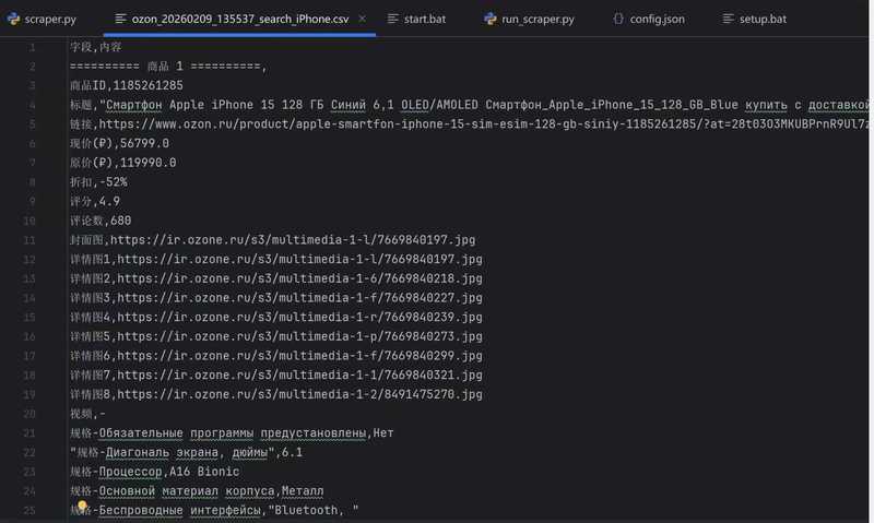 1. 商品信息采集模块:支持按关键词、分类、店铺等维度批量采集Ozon平台商品的标题、价格、库存、销量、评分、详情描述、图片链接等核心信息,可自定义采集深度和范围。