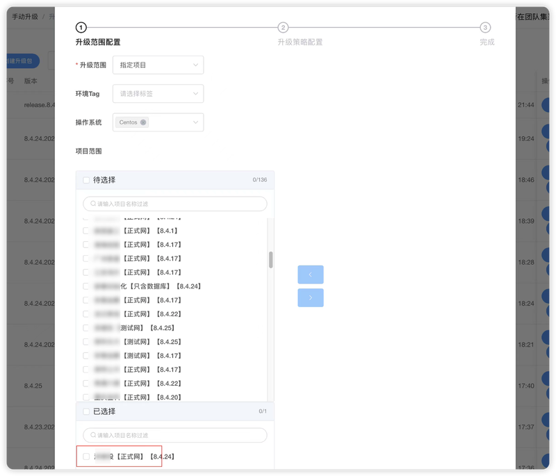 项目升级(选择要升级的版本包,选择要升级的项目,调用各自项目的k8s集群进行sql 执行和替换镜像),也可选择定时升级