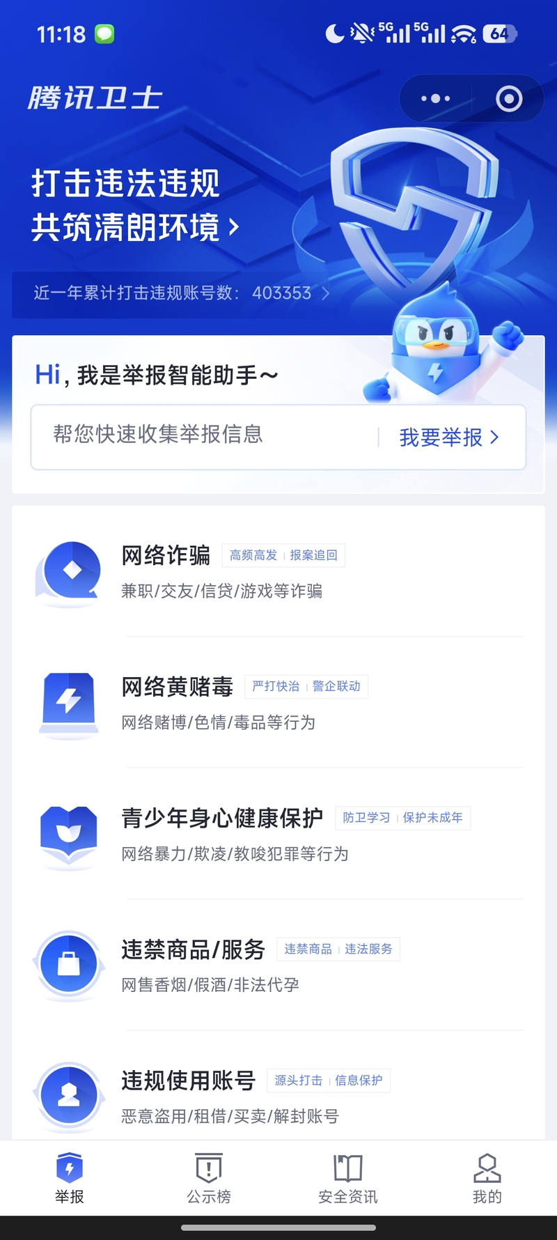 该小程序是腾讯旗下的网络安全服务平台,主要功能模块包括: