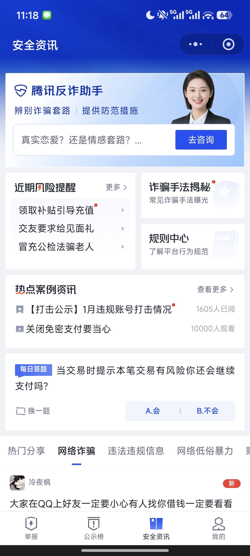 1. 诈骗举报模块:支持用户一键举报诈骗信息、恶意链接及违规账号,提交相关证据材料,协助平台与执法部门打击网络犯罪。