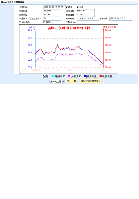 2、功能描述:基于arcgis能对长江中下游各水文站、蓄滞洪区、各分支流进行定位,根据模型计算的结果进行模拟;根据当日和前两天实测水情信息,利用边界控制站的流量预报值,对后七天长江干流水情进行预报计算,并根据预报水位是否超过防洪控制水位,确定分洪方案;以过程线、数据表、断面图和洪水演进动画四种方式供用户对计算的方案进行查询比较。