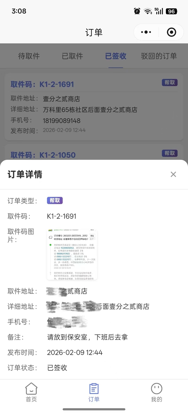 代取员端:提供订单接收、详情查看、取件确认、送达确认等功能,代取员可提前查看订单信息,到驿站后精准找件,大幅提升取件效率。