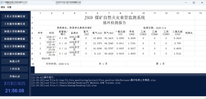 合规数据生成模块:内置“束管监测(SGC)”与“光纤测温(GXW)”双重解析策略。根据提取的时间、位置和浓度数据,动态生成符合安监局规范的“基础数据(DDY)”与“实时数据(DSS)”文件,并自动计算专属测点编码。