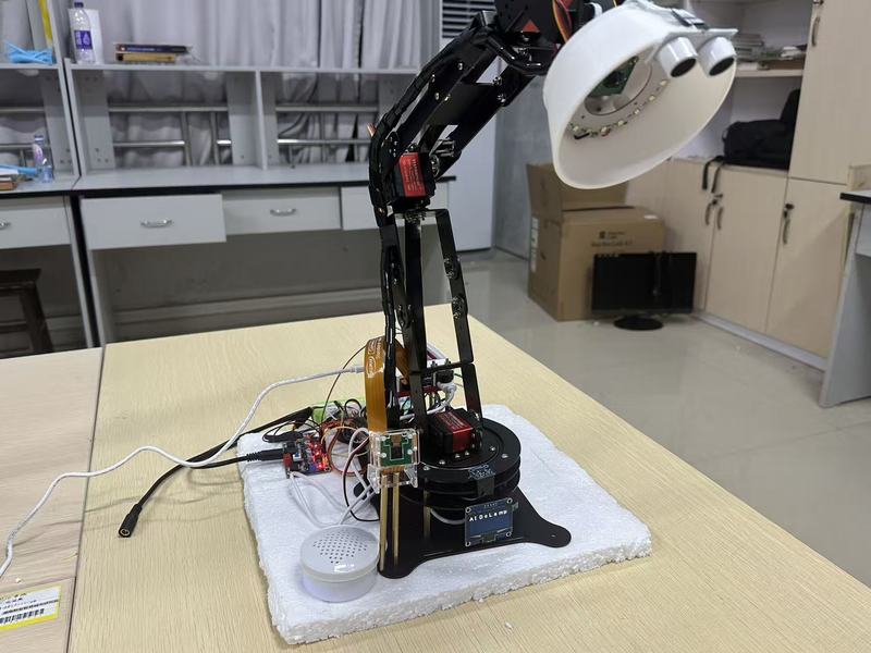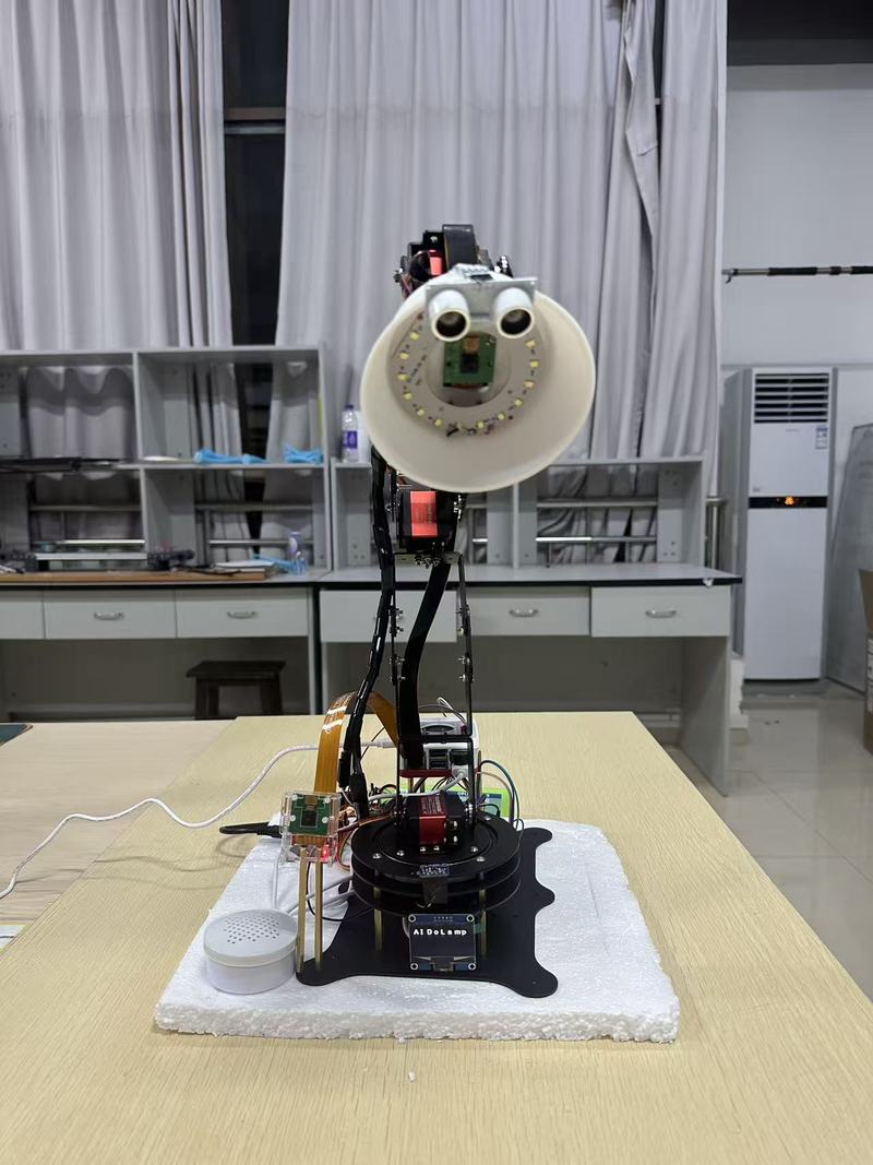 开发一款融合计算机视觉、嵌入式系统与人机交互的智能台灯,实现健康坐姿监测、护眼照明与多模态交互。核心闭环为“视觉感知—智能决策—机械执行”,在树莓派5上高效部署YOLOv8n与MediaPipe模型,集成DeepSeek语言模型实现语音交互,达到实时性能。
