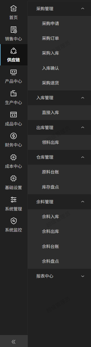 技术实现方面,项目基于 Vue3 构建前端应用,并采用组件化与模块化开发方式,将订单管理、库存管理、生产管理等业务拆分为独立模块,提升系统可维护性与扩展性。