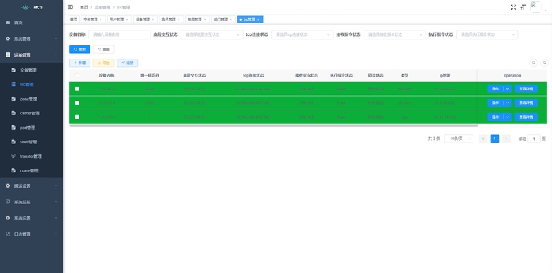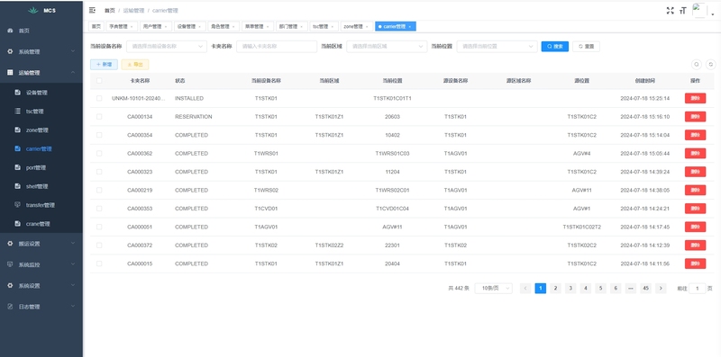 MCS负责对生产物料的搬送进行集中控制,对物料的储存进行管理; MCS接收MES的搬送指令后,选择有效且最优的搬送路径,然后协调AMHS设备来执行搬送指令,确保指令正确执行,实时监控物料的位置信息并回报MES。