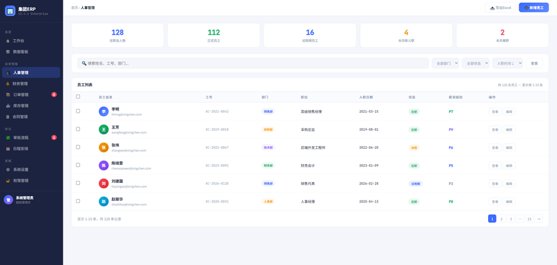 覆盖人事、财务、订单、库存、合同、审批等核心业务模块,