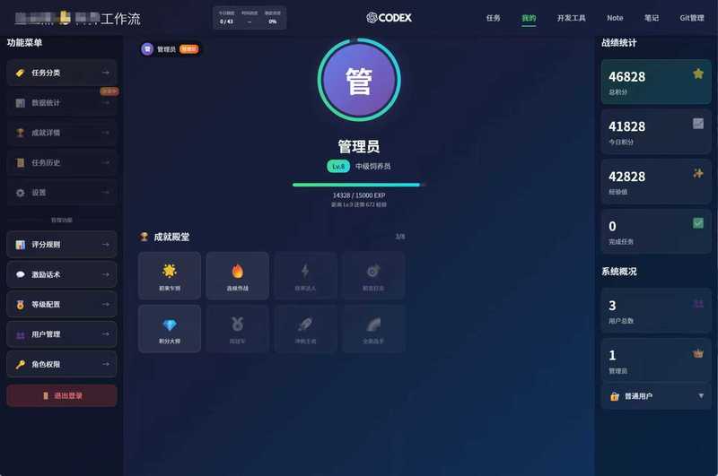 解决普通工作人员的管理,大盘数据实时可查询人员的去向工作的内容,工作的状态,第一时间给出精准的评价。给予积分和对应的奖励,战绩的统计,总积分,今日积分,激励的话术,用户等级的配置,权限的管理。以及日常日志信息的录入