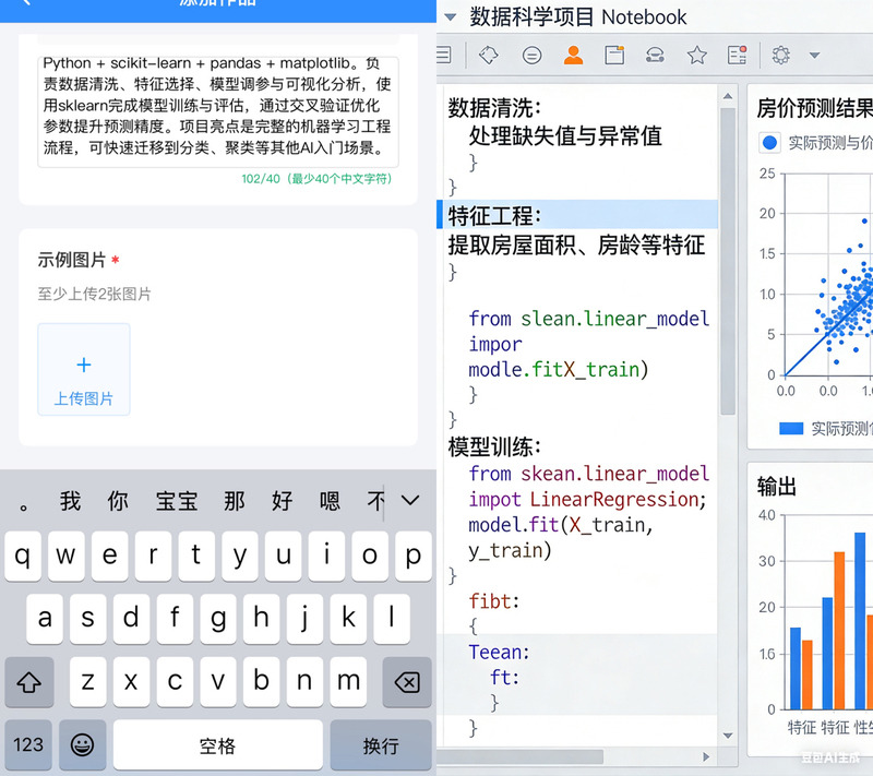我独立完成从数据到模型的全流程实现,技术栈采用Python + scikit-learn + pandas + matplotlib。负责数据清洗、特征选择、模型调参与可视化分析,使用sklearn完成模型训练与评估,通过交叉验证优化参数提升预测精度。项目亮点是完整的机器学习工程流程,可快速迁移到分类、聚类等其他AI入门场景。