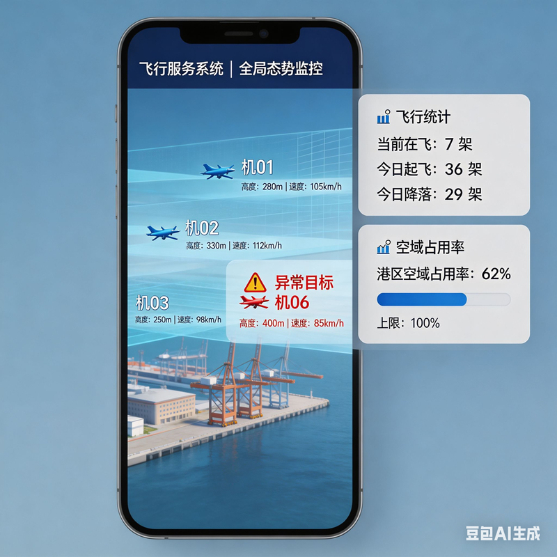 ◦ 监视:雷达+ADS-B+电子围栏,全域追踪飞行器状态,异常实时告警。
