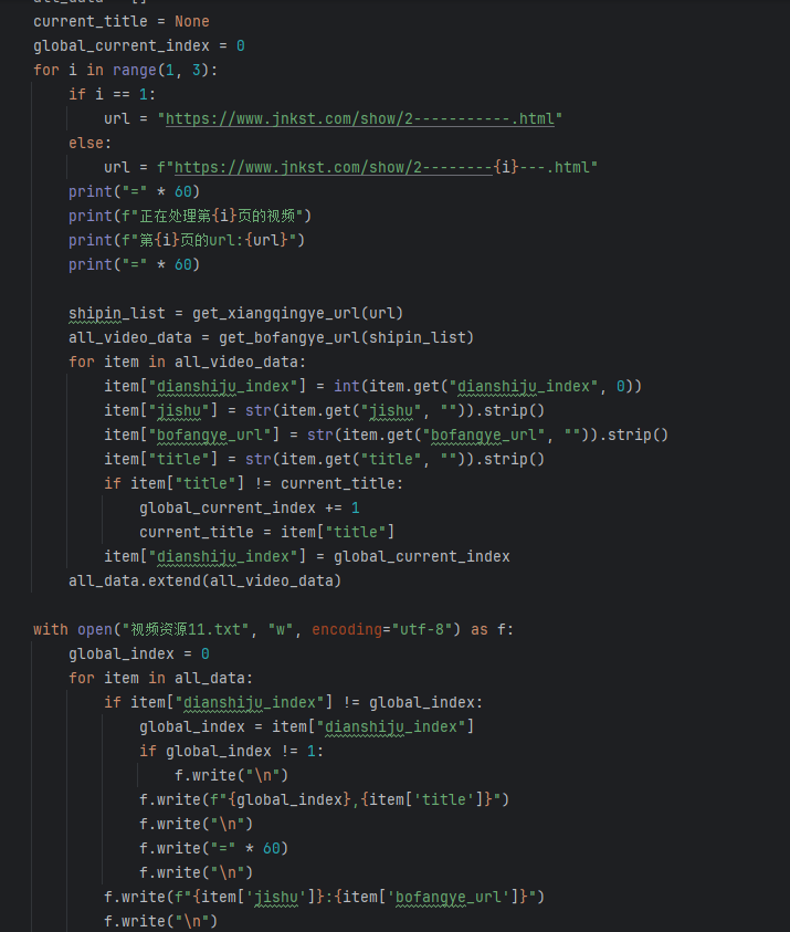 1.采集某个视频网站分页里面各个视频的URL