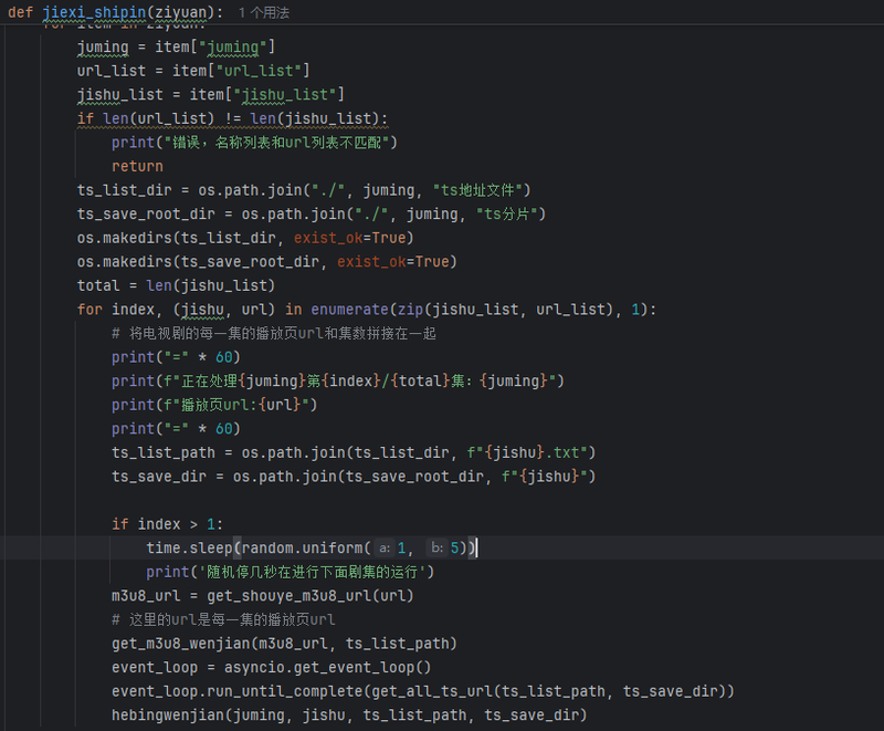 2.使用异步抓取每个视频的m3u8文件,如果有加密的话可以加上解密逻辑,并且合成完整的视频。