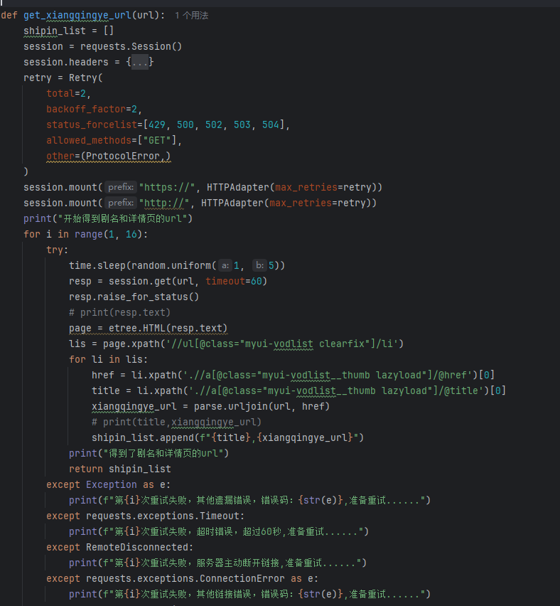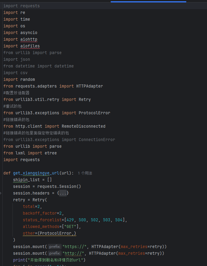 2.使用了异步抓取,速度比较快。分页抓取,只要硬盘够大,可以完整的抓取网站所有的电视剧集。加了很多的保护重试机制,使代码健壮,运行无碍。