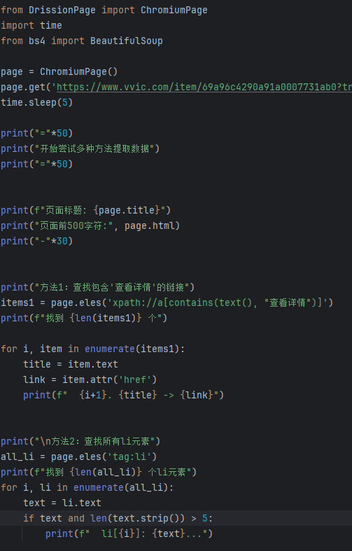 1.使用自动化工具打开网页,分析网页,提取文本数据