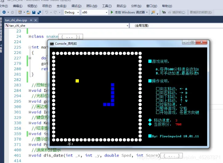 2. 移动逻辑:游戏的每一帧,根据当前方向计算出蛇头的新坐标,并将其添加到列表末尾。如果蛇没有吃到食物,则需要移除列表的第一个元素(蛇尾),从而形成移动效果。
