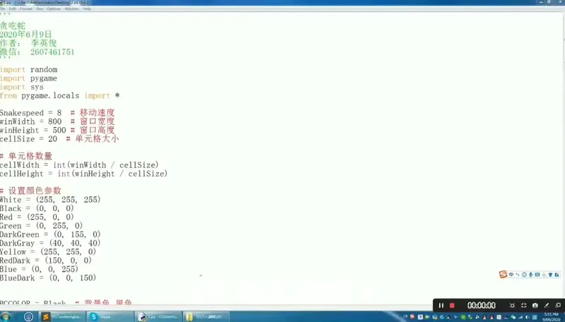 * 设置游戏窗口的大小、标题和时钟(用于控制游戏帧率,即蛇的移动速度)。