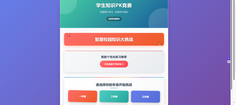 学生PK竞赛系统:支持学生间实时答题竞技,通过积分排名和奖励机制激发学习兴趣,形成良性竞争氛围。