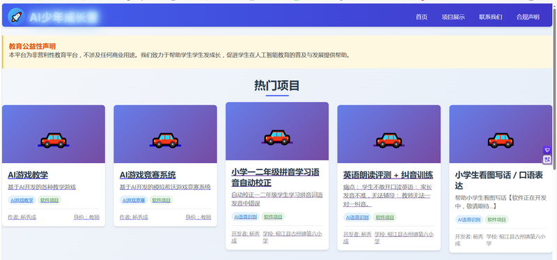 对学生而言,提供有趣、有效的AI学习体验;对教师而言,提供减负增效的教学工具;对学校而言,构建完整的AI教育生态系统。系统已在榕江县古州镇第六小学等学校实际应用,真正实现了"让每个孩子都能享受优质AI教育"的目标。