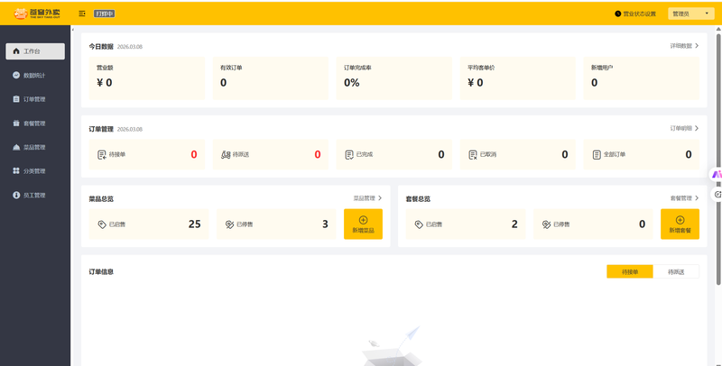 主要功能:支持学生用户注册登录、菜品浏览、购物车结算、订单状态实时查询;实现商家餐品上下架、订单接单退单、营业额统计;提供管理员对用户、商家、配送员的全流程管控与报表导出能力。