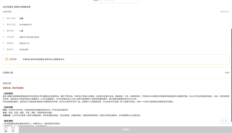 聚焦 公益慈善、社区服务、校园志愿、企业社会责任(CSR)四大核心场景。服务对象涵盖基金会、民间公益组织、学校及企事业单位,适用于线上募捐、公益项目公示、志愿者招募与时长打卡、爱心物资溯源、公益活动报名等全流程公益业务。