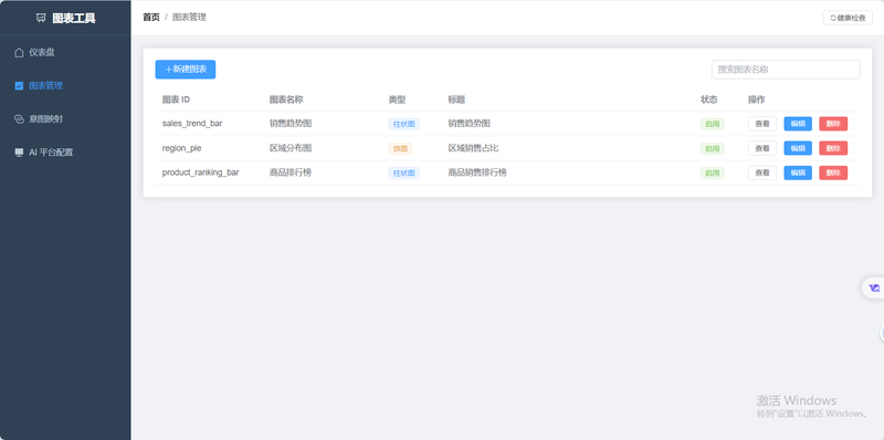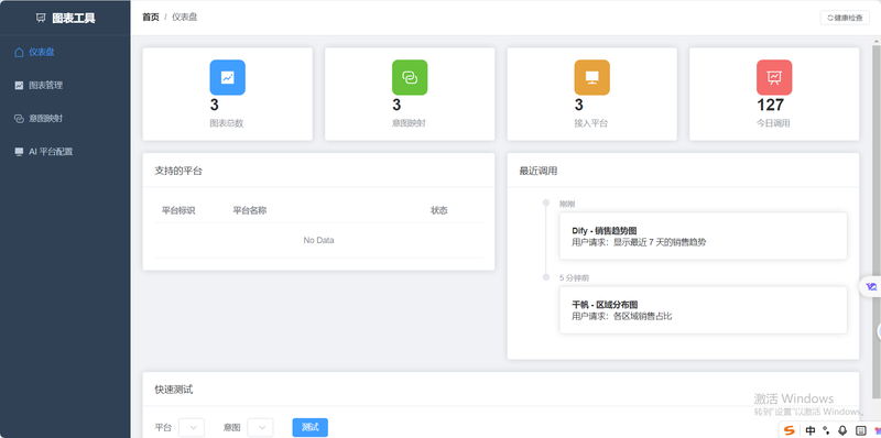 核心特性 • ✅ 多平台兼容:支持 Dify、百度千帆、阿里百炼等主流 AI 平台 • ✅ 可配置化:零代码配置图表,图形界面管理 • ✅ 安全可控:JWT 鉴权、API Key、HMAC 签名、限流防护 • ✅ 灵活扩展:插件化架构,易于新增图表类型和数据源。