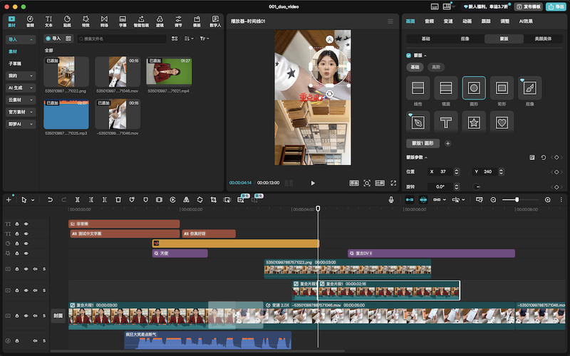 Duo-Video 是一个强大的 Java 视频编辑 SDK。通过简洁的json结构组织视频结构,并生成剪映草稿工程文件。支持最新的剪映版本,支持文本模板、花字、多段文本;支持复合片段、特效、支持绿幕...