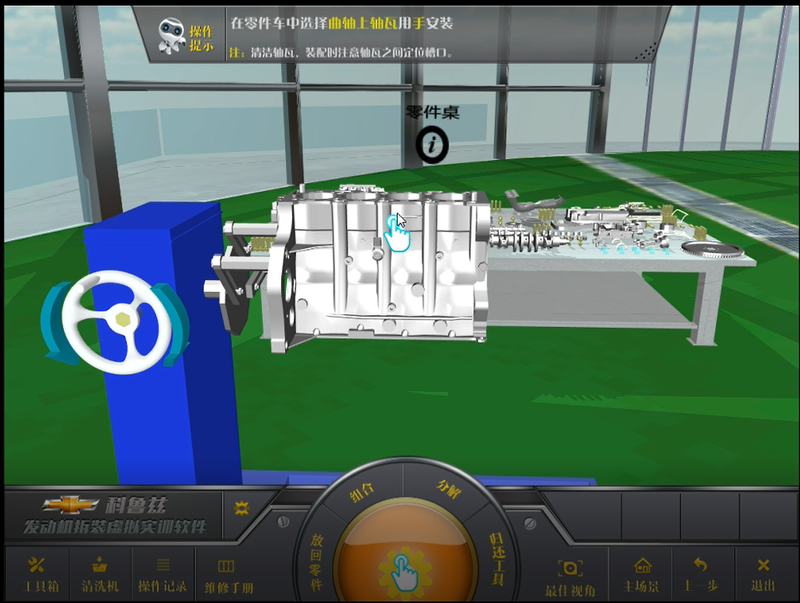 该项目为汽车综合仿真实训软件,主要面对汽修学院。本软件包含通用车系科鲁兹汽车和大众汽车系宝来汽车的相关资料。软件主要实现的功能为:1、结构展示,通过模型使客户更加直观的通过旋转缩放仔细查看汽车相关部件的构造及位置;2、模拟装配,将相关结构进行分解,打乱顺序,使客户根据相关经验和提示对相关部件进行有序的组装;3、电路排故,通过模拟电路,使客户通过万用表及相关读数检查出相关的电路故障并对其进行排除;4、仿真实训,通过具体模拟场景,使客户在电脑上即可实现对科鲁兹发动机进行拆装。软件具有配套的后台,教师或管理员通过后台对班级、学生甚至教师进行管理、查看操作日志