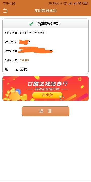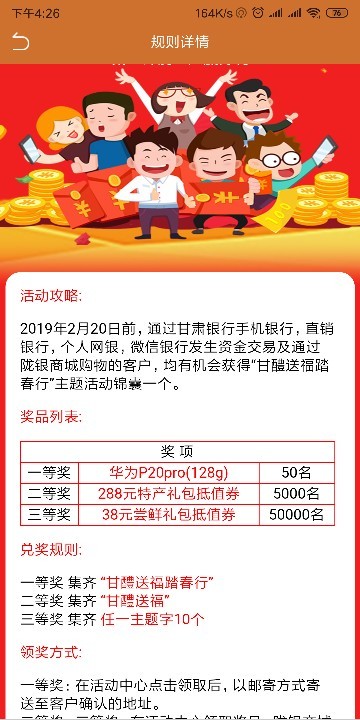 1.开发甘肃银行手机银行转账二期优化功能; 2.开发甘肃银行手机银行新用户注册送礼包功能; 3.开发甘肃银行手机银行新春集福字功能(类似支付宝集五福功能)