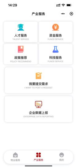 为园区、孵化器、入驻企业及相关监管机构构建“空间管理系统、产业运营系统、产业监管系统”一站式数据运营服务平台,促进产业运营主体的数智化升级及实现产业监管手机端该小程序提供给入驻孵化器的企业进行房源变更、物业保修、工区预定、物品放行、场地申请、IT运维、行政办公、企业债权与股权业务、企业数据上报、需求