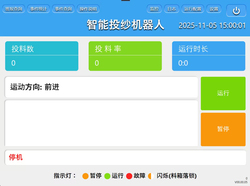 两台视觉提升机分别将纱筒送至指定位置,系统自动识别纱筒的大小头朝向。机械臂根据算法计算出的三个纱筒各自的摆放位置坐标,依次抓取并精准落筒。同时,控制系统驱动吸气装置自动寻找并抓取纱头,为后续工序做好准备。