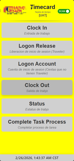 该系统基于Web前端技术开发,适配手持机的触控操作与扫码硬件能力,核心功能围绕“员工考勤”和“任务进度管理”两大核心展开,具体可拆解为6大模块:1.核心操作入口模块页面顶部为品牌标识与功能开关(扫码模式开关),中部是核心功能按钮区,包含6个核心操作按钮:ClockIn(上班签到):员工通过手持机扫描
