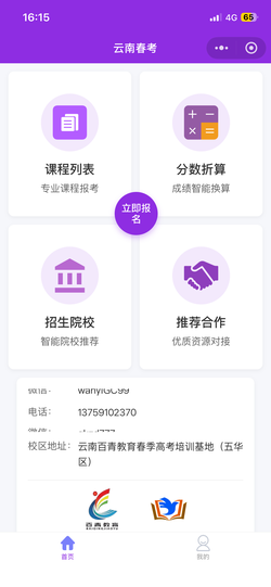 功能介绍项目具体功能模块:会考分智能计算器:输入11科会考等级,自动按官方规则(A=20,B=16,C=12,D=8,求和×1.36)完成精准折算。院校录取预测系统:基于用户输入的会考折算分与预估实操分,通过算法匹配“冲刺、稳妥、保底”三个梯度的院校名单。院校专业数据库:完整收录近30所云南省专科院