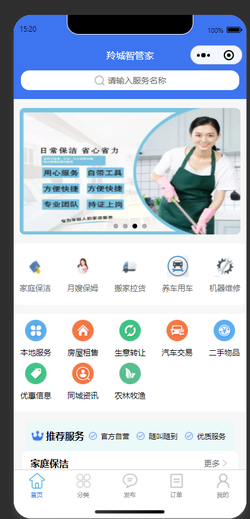 为用户提供家政服务平台简洁直观的操作界面。用户可在上面浏览各类家政服务项目,查看服务人员信息及评价,进行在线预约和下单,完成支付,并在服务结束后对服务进行评价和反馈。同样通过微信小程序羚城智管家实现,服务人员可以接收订单通知,查看订单详情和用户需求,导航至用户地址提供服务。在服务过程中,可记录服务进
