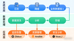 功能模块包含日志采集模块、转存归档模块、异常监控模块、查询分析模块。主要功能:通过Filebeat采集多来源日志(系统、应用、网络),经Logstash过滤格式化后存储至Elasticsearch;配置日志轮转+对象存储归档策略,降低存储成本;通过Kibana配置关键字告警(如“Error”“非法访