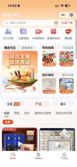 1.达人素材管理,素材内容识别,商品管理,智能剪辑,智能巡检,切片手管理,AI音频,爆品视频抓取。2.为切片手提供带货订单实时查询。带货榜,带货指南,精品专区。AI视频脚本。
