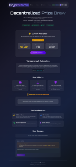 •Web3钱包集成—与MetaMask连接,实现安全的区块链交易。•中央化抽奖系统—使用ChainlinkVRF来保证随机性。•智能合约自动化—在BNB链上无缝处理报名、抽奖和支付流程。•现代用户界面/用户体验—采用暗黑主题和渐变效果,呈现出未来主义的外观。•用户评价系统—支持登录、访客模式和评分系