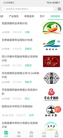 行情指数:展示中药材价格指数、涨跌排行、热门品种分析。行业资讯:发布政策法规、产地新闻、种植技术、市场分析文章。药材百科:建立权威的数据库,包含药材的性味归经、功效、鉴别方法、种植技术等。