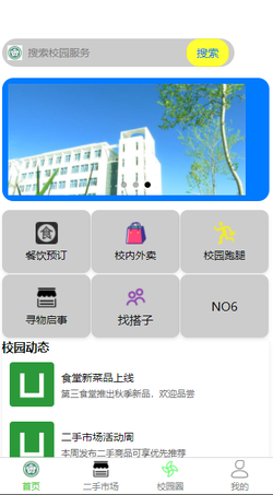 这是一款大学校园内,线上订饭、有校园内跑腿可以帮消费者取快递、带去文件等服务,还有校内的表白墙,用户刻意发表自己的动态,也可以把表白墙作寻物启事来利用;还有商品进行买卖,可以租借,用户可以根据自己的需求,满足需求