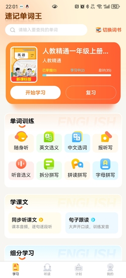 学习计划模块,用户可以自己根据学习习惯创建每日学习单词数量,系统根据用户设置自动生成词书学习计划。专属云词本和错题本,用户可随时将生词和易错词加入收藏本和错题本。音标级发音评分,通过AI技术精确到每个音标进行评分,针对性纠正错误发音。