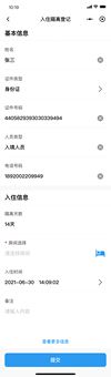 疫情期间,用于集中隔离风险管理的小程序,具有个人信息、健康排查、入住登记、离店登记、医学观察、...