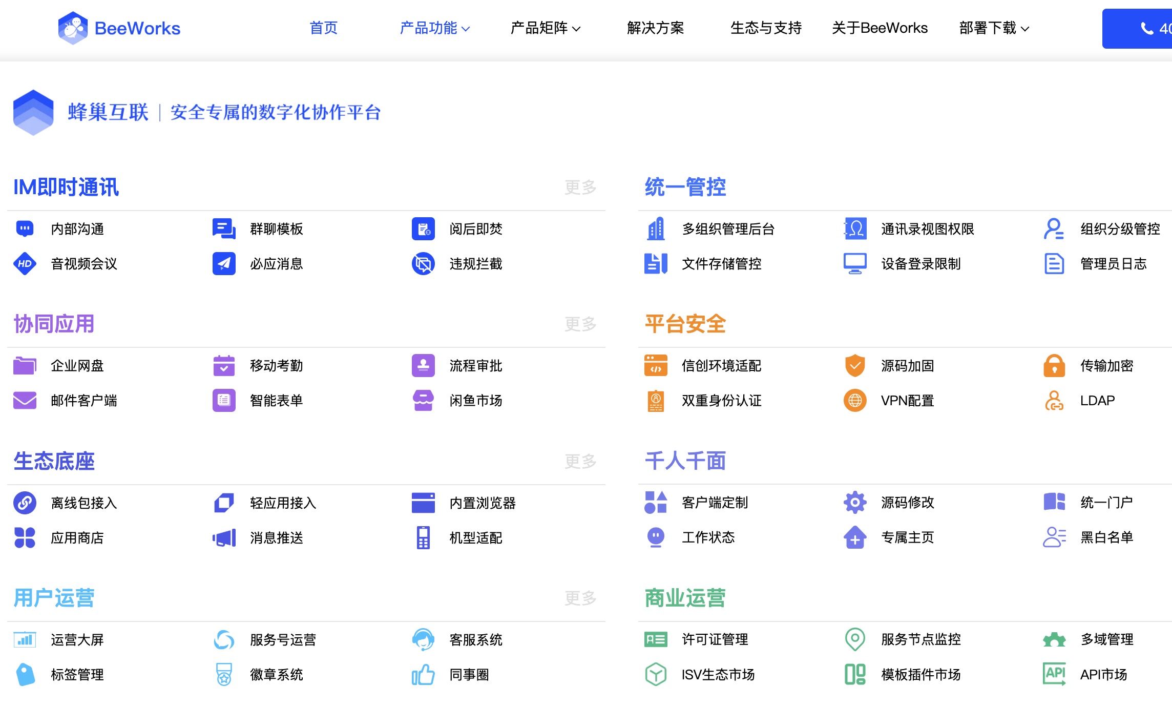 IM通讯、协同应用、文档、企业客服、适配会议、审批、日程日历、考勤、表单、应用管理。多种协同办公配套能力让您聚焦核心业务,企业和开发者能够使用任何主流的前端和后端技术,以及任何数字化管理方法论、流程和工具快速在im即时通讯WorkPlus上构建应用,从而最大程度与集成进来的应用解耦。