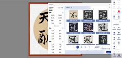 整合所有书法大家的字帖作品,打散重组,实现不同书法作品的个性化创作,可通过根据书架,书体,部首,结构,碑帖等维度搜索不同的书法作品,可选择原碑帖字或处理过的透明字进行个性化组合创作。