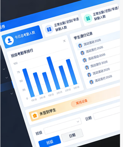 1. 多场景考勤:课堂考勤、会议考勤、门禁通行记录,支持人脸识别、刷卡、二维码多种方式2. 考勤规则引擎:自定义考勤时段、迟到/早退/缺勤判定规则、请假审批流程3. 设备管理:对接闸机、人脸识别终端、读卡器等硬件,支持设备状态监控与远程控制4. 数据统计分析:按班级、教师、学生维度统计考勤率、缺勤率