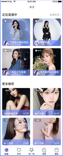 1.登录,手机验证码注册,验证码修改密码2.个人信息修改,头像上传3.直播列表4.直播观看,滑动切换直播间5.直播间互动,礼物列表,礼物动画6.充值提现等